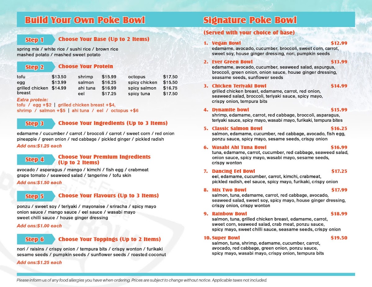 Welcome to Poke 1 Bowl, a delightful eatery nestled in the heart of Kingston at 268 Princess St. This cozy spot specializes in poke bowls, offering a fresh and healthy alternative to fast food. If you're looking for a vibrant, nutritious meal in a welcoming atmosphere, look no further.